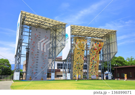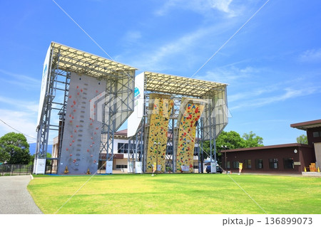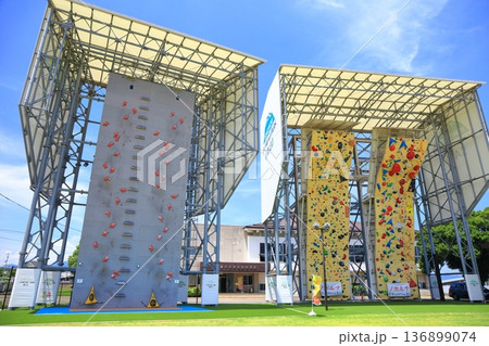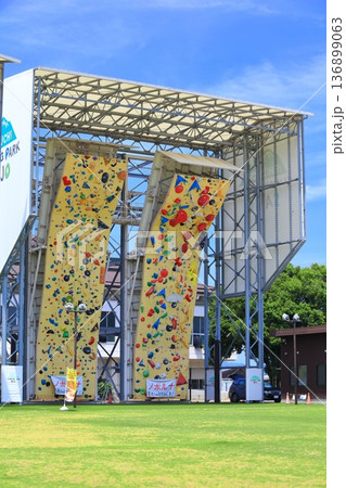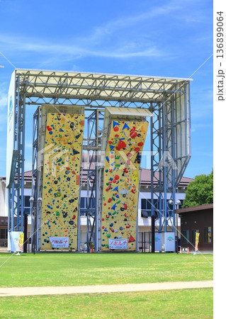 岩手縣盛岡市體育公園內設立的運動攀岩牆,人們在這裡比賽看誰能爬得最高。