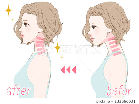 一位女性改善智慧型手機頸部姿勢前後的臉部特寫對比