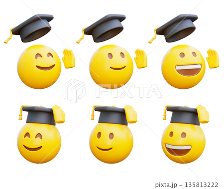 Exciting 3D graduate emoji character throwing a graduation cap into the air for celebration
