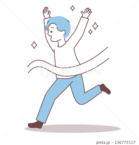一名男子衝過終點線,高舉雙臂歡呼 | 簡潔的極簡主義插畫
