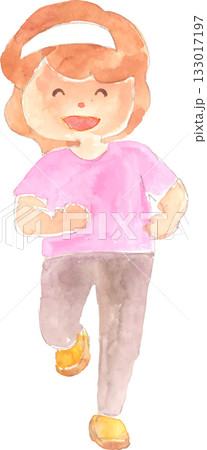 水彩插畫,描繪一個戴著頭帶奔跑的女孩,向量圖