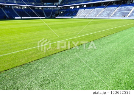 足球專用體育場:比賽前修剪草坪(長崎體育場)