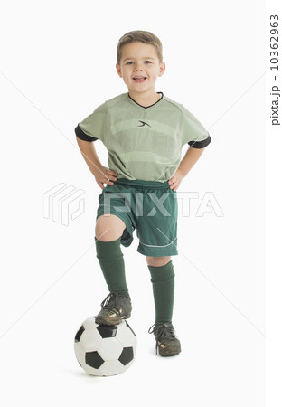 Portrait of boy (4-5) dressed as soccer player