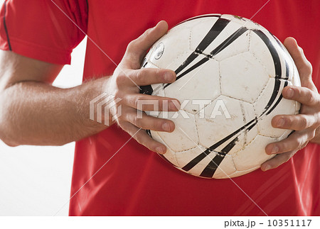 Soccer player holding ball