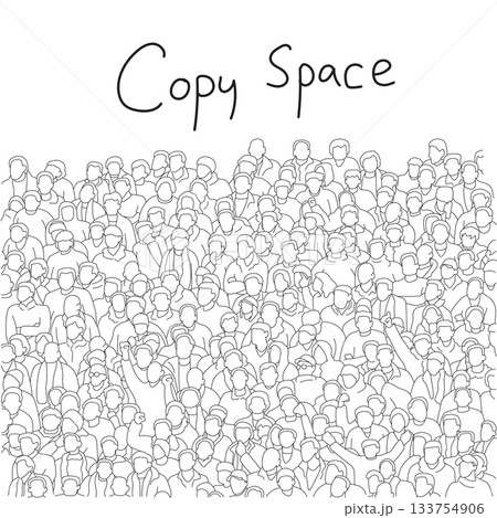 people cheering in a stadium with copy space illustration vector hand drawn with black lines