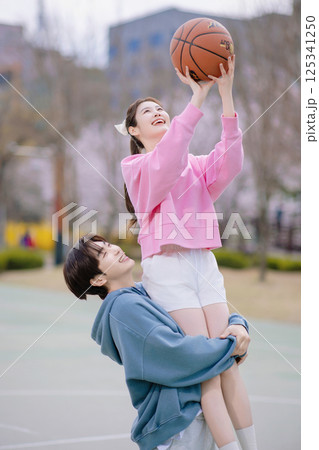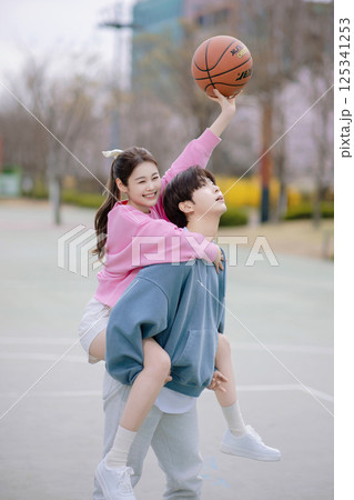 男孩和女孩打籃球