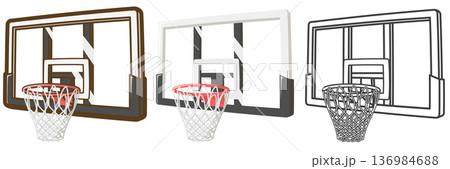 Basketball Hoop Set With Color Backboards, Vector Illustration. Indoor and Outdoor Basketball Hoop Collection. Adjustable Pole Basketball Hoop Illustration