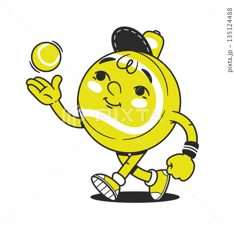 Comic tennis ball cute character