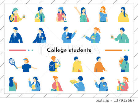 為國中和高中學生設置的學校生活圖標,手繪風格插圖