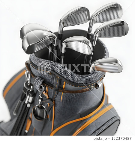 Golf bag mockup close top down angle showing clubs