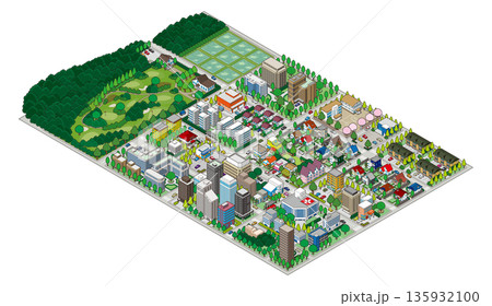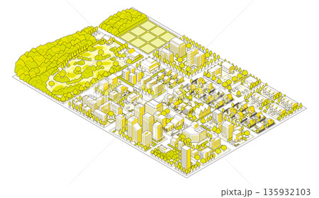 城市景觀。城市景觀。等距城市景觀。