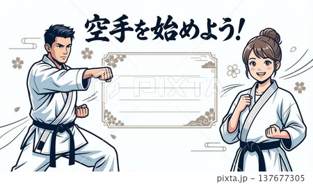 空手道班學員招募橫幅背景素材:讓我們一起打造健康的身心!日式插畫背景
