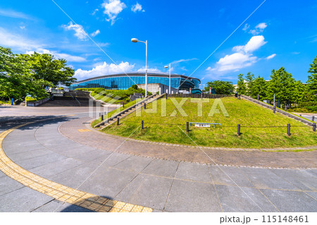 日本橫濱市景,俯瞰橫濱國際泳池的樓梯(上樓梯後橫濱國際泳池在後方)