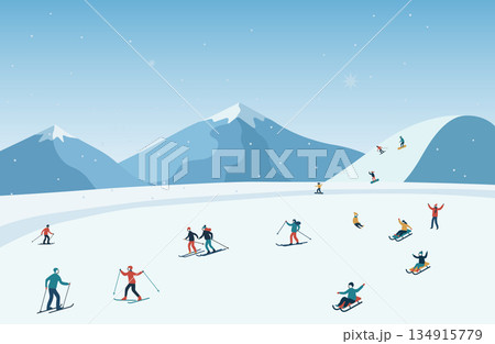 熙熙攘攘的滑雪勝地插圖背景