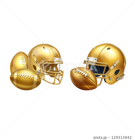 Protective sport gear for team play: isolated baseball and football helmets, gloves, and balls