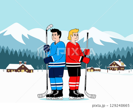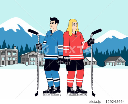 Ice Hockey Player Sport Vector Illustration featuring a Helmet, Stick, Puck, and Skates on an Ice Surface for Game or Championship in a Background