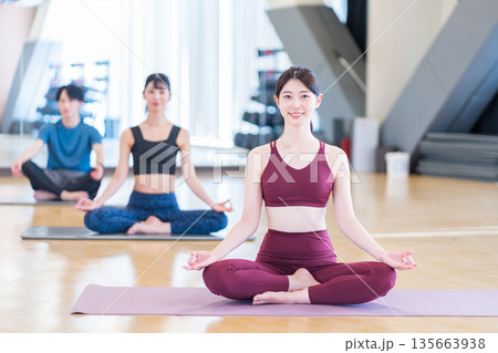 年輕女性正在練習瑜珈。圖片由 Renaissance Makuhari 24 運動俱樂部及桑拿水療中心提供。
