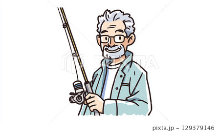 一位微笑的老人高興地站著,手裡拿著一根釣魚竿