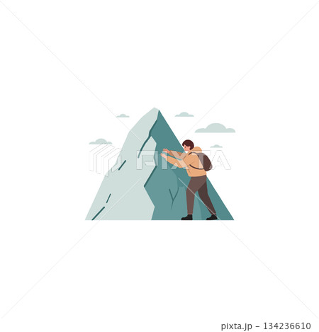 Illustration depicting a person engaging in rock climbing with determination against a rugged wall