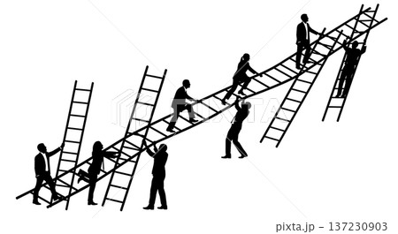 Diverse Group Climbing Ladder Together.