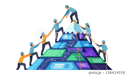 People climbing on mountain. Career competition color concept