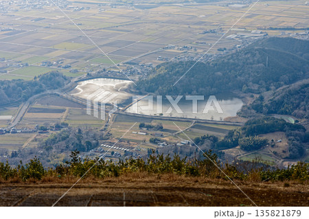 從大阪嶺眺望的紅色稻田和瀨戶內海