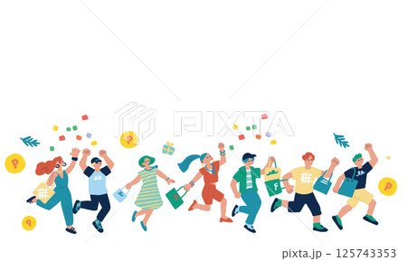 積分活動:手繪插畫,描繪人們因禮物和購物而感到高興