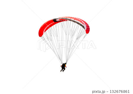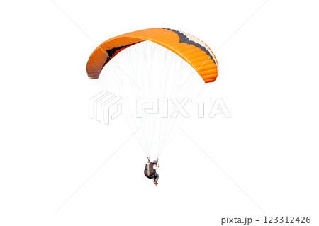 The sportsman flying on a paraglider. Beautiful paraglider in flight on a white background. isolated
