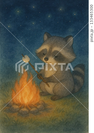 溫柔小浣熊烤棉花糖的夜晚