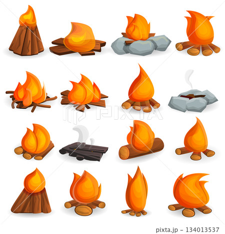 Campfire icon set, cartoon style