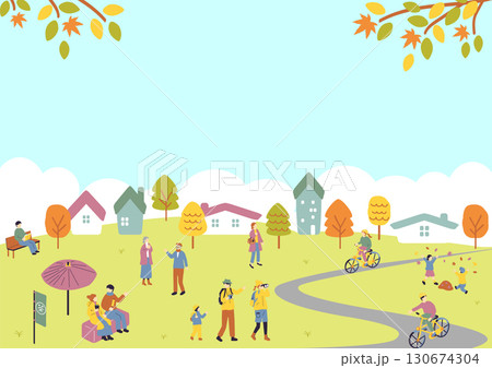 Autumn celebration with families enjoying nature during fall season. Vector illustration