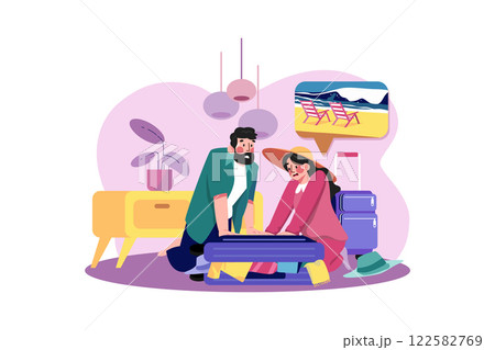 Family Beach Vacation Illustration concept. A flat illustration isolated on white background