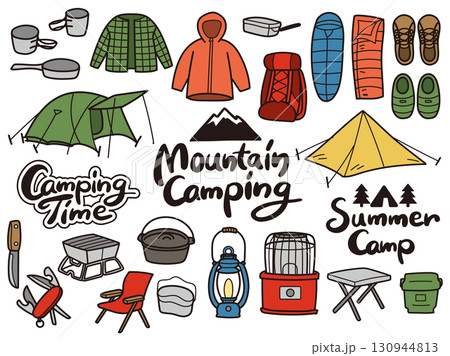 手繪露營設備插圖