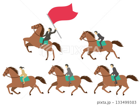 一組身著西裝、騎馬的商人插圖——男性領導者