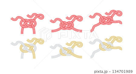 一套用於馬的水引繩,非常適合新年賀卡和與馬有關的慶祝活動(賽馬、騎馬俱樂部、牧場)
