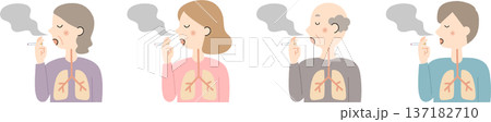 一組描繪煙霧和吸煙者肺部的插圖