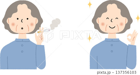 老年女性吸菸和老年女性戒菸後,單色