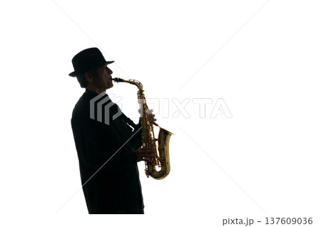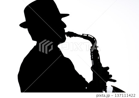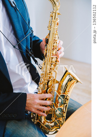 一位薩克斯風手抱著頭,憂心忡忡地看著樂譜。