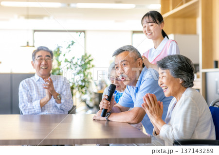 老人在卡拉OK熱情歌唱