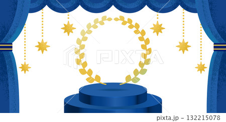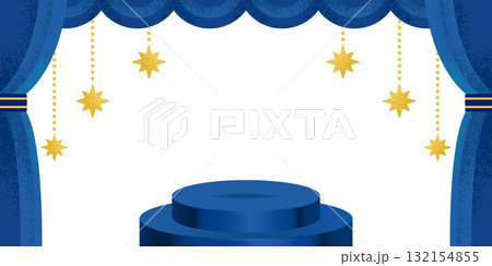 帶有金星裝飾和藍色窗簾的舞台背景插圖(頒獎典禮、演講、典禮、活動的設計)