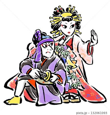 歌舞伎插圖圖示(傳統文化、旅遊、日本素材)