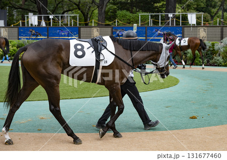 賽馬場場景:訓練家等待賽馬歸來,福島縣福島市