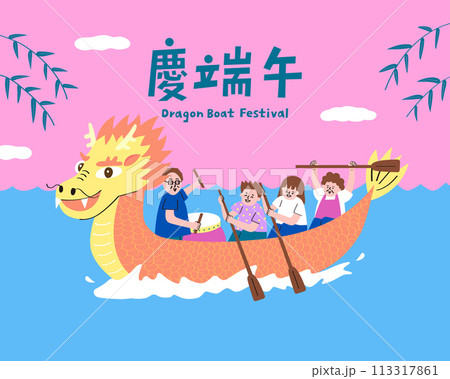 Duanwu Translation: Dragon Boat Festival Vector Illustration featuring a Dragon Boat Race on the River, Participated by Several People in a Background