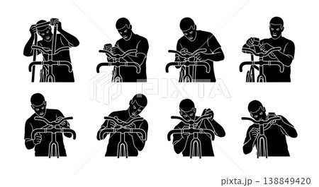 Black Solid Handlebar Tape Wrapping Mechanic Silhouettes