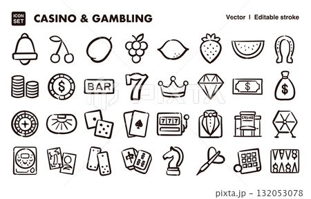 賭場和賭博圖示插圖集 EPS 版本可以編輯線條粗細等