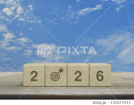 2026 year block with dartboard icon. Goal, Target, Resolution, strategy, plan, Action, mission, motivation, and New Year start concepts