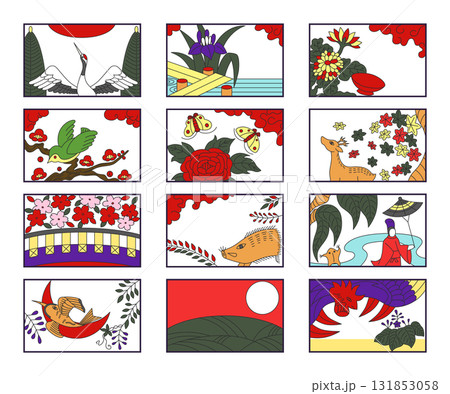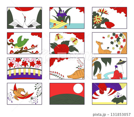貼紙風格方形 hanafuda 圖示集(無背景)