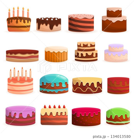 生日快樂素材集:蛋糕、餅乾、花束和禮物插圖圖標