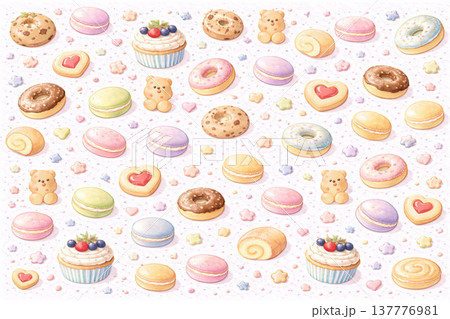 糖果系列:美麗的俯視圖圖案,上面均勻分佈著小糖果。