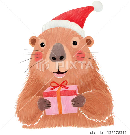 水豚拿著聖誕禮物
